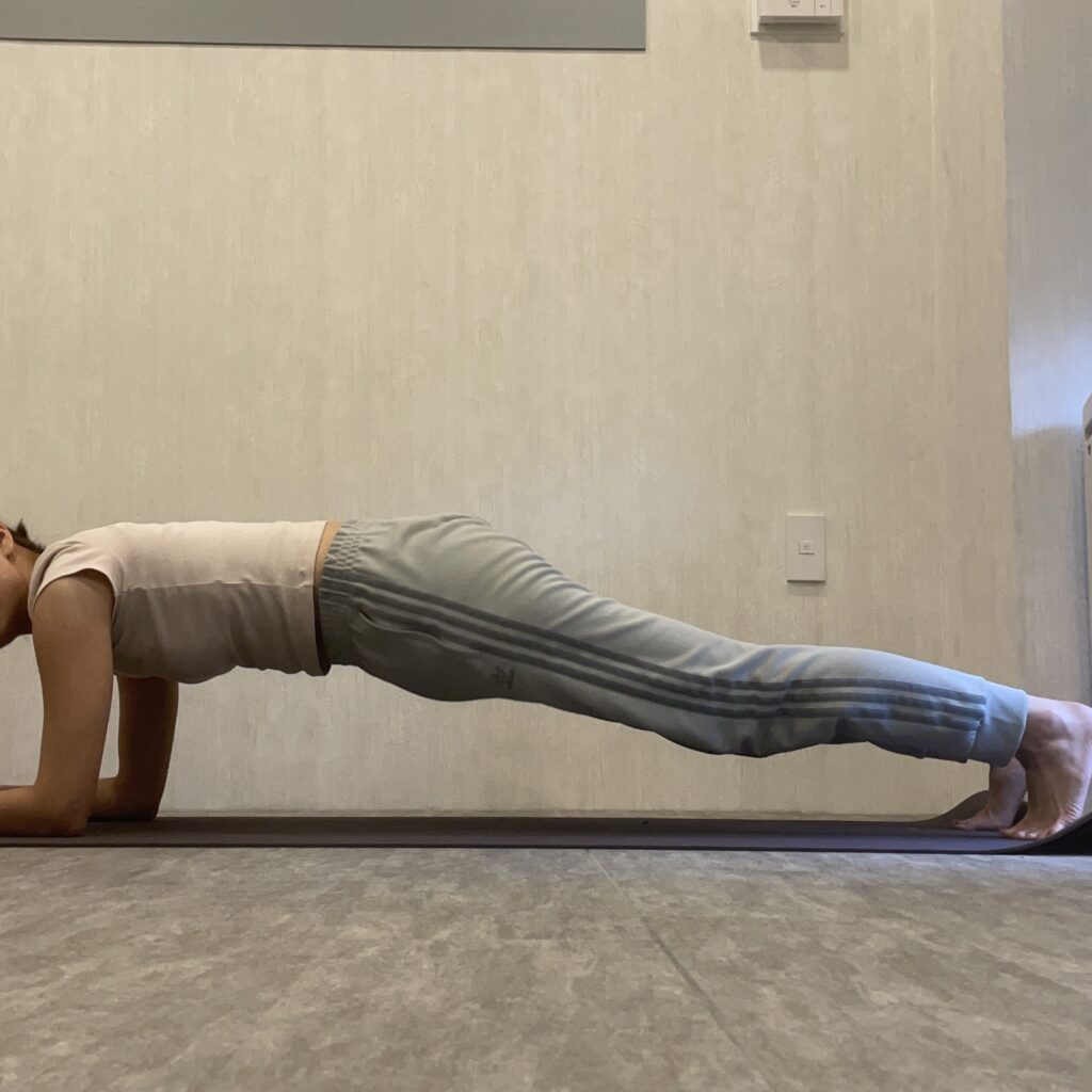 • 基本のプランクの姿勢から片手ずつ伸ばして腕立て伏せの姿勢に